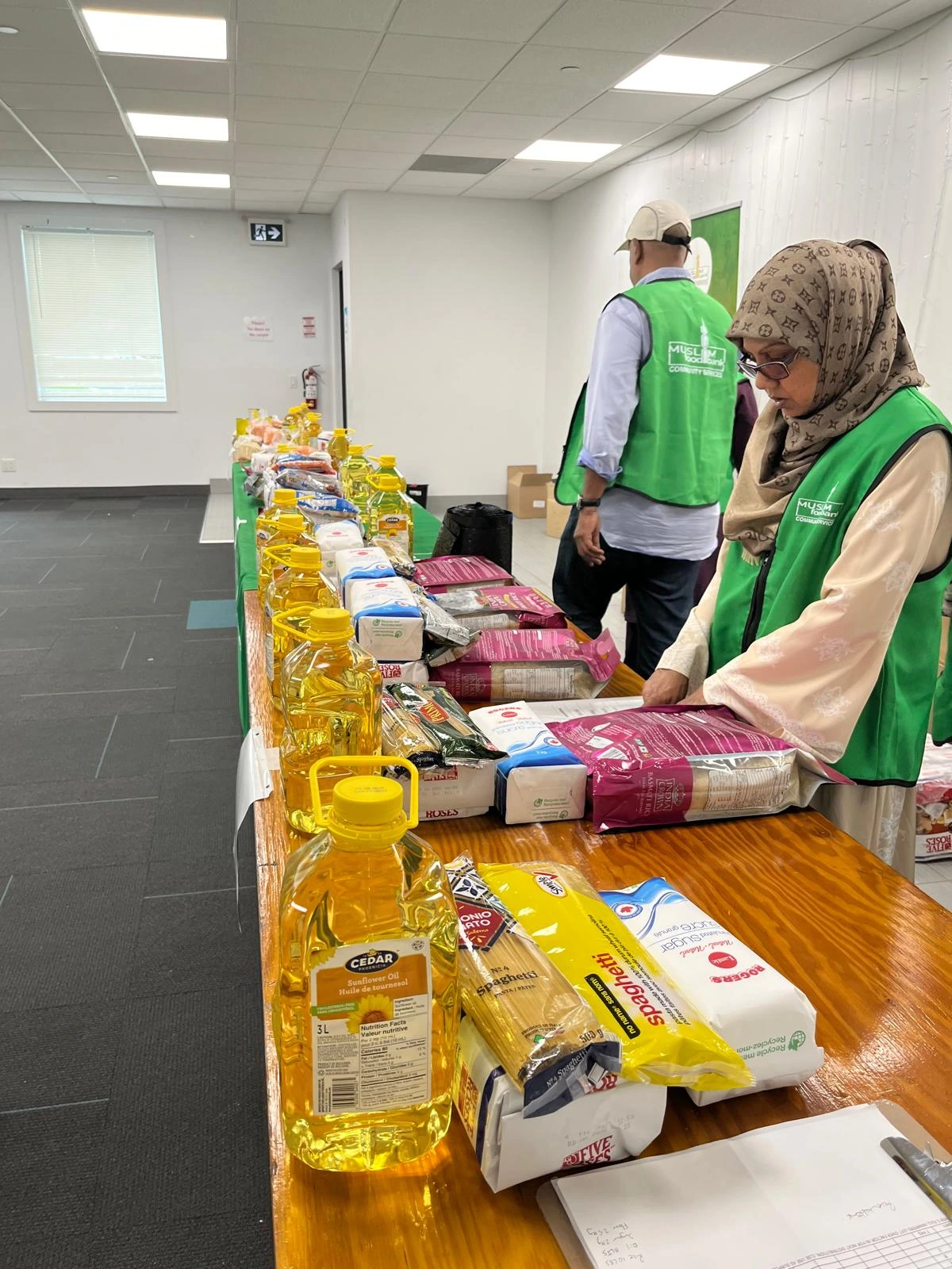Once a month, we distribute food hampers in Kitchener, ensuring families access nutritious halal food and other essentials like baby items and clothing.